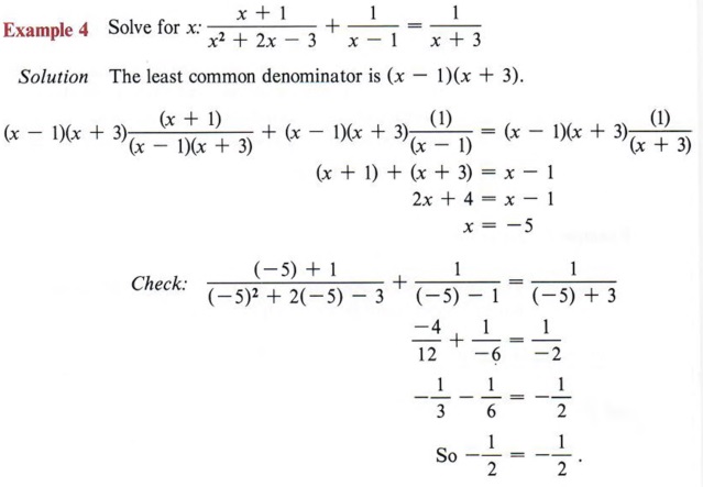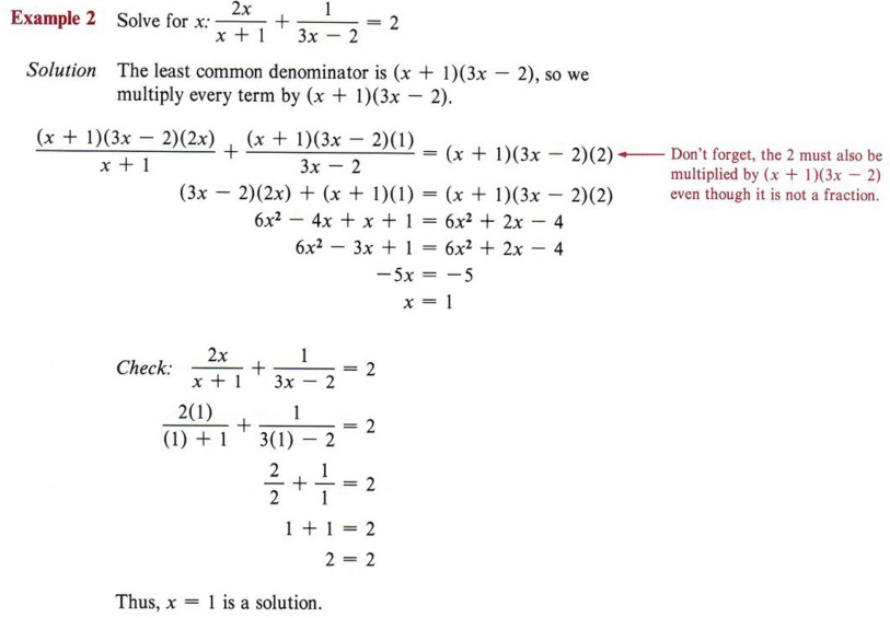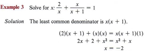 In chapter 2 we encountered equations that have fractions. However, those fractions all had numerical denominators. Now we will discuss equations that have fractions involving variables in the denominators.