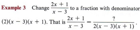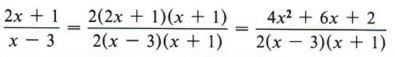 Solution Since the original denominator (x - 3) has been multiplied by (2) and (x + 1), the original numerator (2x + 1) must also be multiplied by (2) and (x + 1).