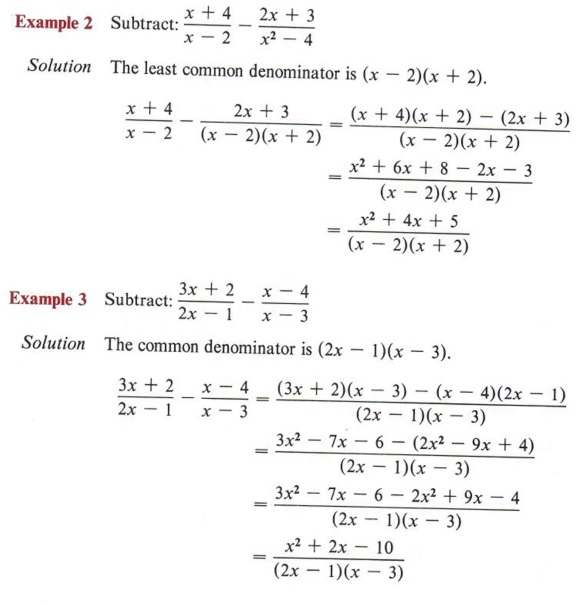 SUBTRACTION OF ALGEBRAIC FRACTIONS
