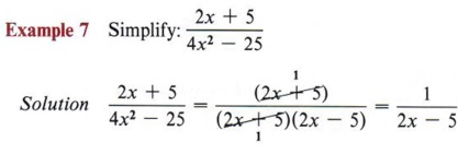 | Note that the numerator 2x + 5 can be written as (2x 4- 5) * 1. Thus when the factor (2x + 5) is divided, the factor 1 remains. |