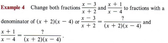 | Note that in finding the least common denominator we pay no attention to the numerator. This is just the denominator of the first fraction. |