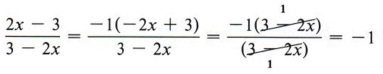 | Any factors in the form of a - b and b - a are negatives of each other, thus 2x - 3 and 3 - 2x are negatives of each other. |