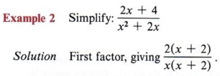 | Here (x + 2) is a common factor, so both numerator and denominator may therefore be divided. |