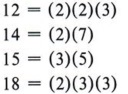 Now look at the factors of the next number, 14, and see that we need (2)(7). But since we already have a 2, we only need the factor (7). This gives