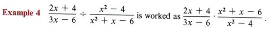 | Note that (x + 2) and (2 + x) are the same but (x - 4) and (4 - x) are negatives of each other. Again, there are many possible forms for the final answers. The form given here is preferred because it contains the fewest number of signs. |
