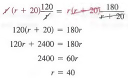 Step 5 We can now solve for r by first multiplying each member by the LCD r(r + 120) and we get