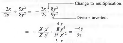 As in multiplication, when fractions in a quotient have signs attached, it is advisable to proceed with the problem as if all the factors were positive and then attach the appropriate sign to the solution.