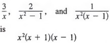 The LCD of a set of algebraic fractions is the simplest algebraic expression that is a multiple of each of the denominators in the set. Thus, the LCD of the fractions