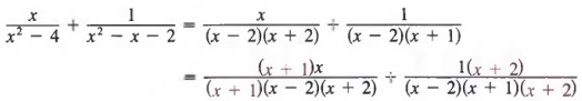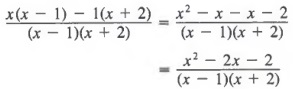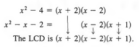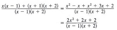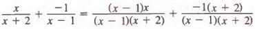 Solution The LCD is (x + 2)(x - 1). We build each fraction to a fraction with denominator (x + 2)(x - 1), inserting parentheses as needed, and get