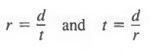 Equations for problems concerned with motion sometimes include fractions. The basic idea of motion problems is that the distance traveled d equals the product of the rate of travel r and the time of travel t. Thus, d = rt. We can solve this formula for r or t to obtain: