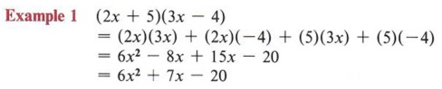 Notice that in the final answer each term of one parentheses is multiplied by every term of the other parentheses.