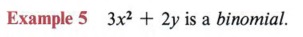 Special names are used for some polynomials. If a polynomial has two terms it is called a binomial.