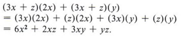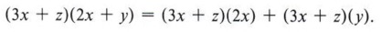 In the previous section you learned that the product A(2x + y) expands to A(2x) + A(y).