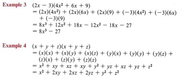 | Try to establish a system for multiplying each term of one parentheses by each term of the other. In these examples we have taken the first term in the first set of parentheses and multiplied it by each term in the second set of parentheses. Then we took the second term of the first set and multiplied it by each term of the second set, and so on. |