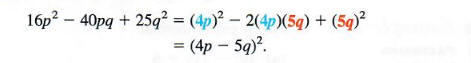 Since 16p^2 = (4p)^2 and 25q^2 = (5q)^2, use the second pattern shown above with 4p replacing x and 5q replacing y to get