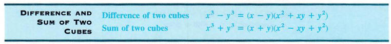 Two other special results of factoring are listed below. Each can be verified by multiplying on the right side of the equation.