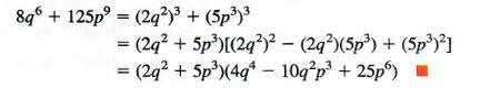 Write 8q^6 as (2q^2)^3 and 125p9 as (5p^3)^3, so that the given polynomial is a sum of two cubes.