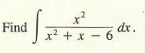 Solution Note that the numerator and denominator have the same degree, 2. Dividing x^2 by x2 + x - 6, we obtain