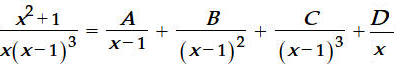 Because we can not be sure how the original denominator was created, we have to take into account all possible cases. This means that the following original denominators were possible : (x-1), (x-1)2, (x-1)3 .Consequently, all corresponding fractions need to be included: