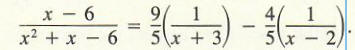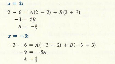 To find A and B, we choose x = 2 and x = - 3 and obtain the following results.