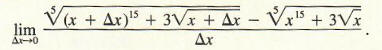 To put it mildly, this calculation would be unpleasant. We would like to find ways to compute derivatives without explicitly using the definition of the derivative as the limit of a difference quotient. A useful preliminary result is the following: