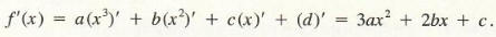 f'(x) = a(x3)' + b(x2)' + c(x)' + (d)' = 3ax^2 + 2bx + c