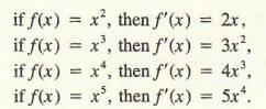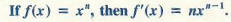 We next give a rule for differentiating f(x) = xn where n is any real number. Some of the following results have already been verified in the previous section, and the