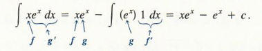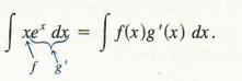 in order to apply Formula (1), we must determine how to choose f and g. The rule of thumb is to choose for g '(x) the "most difficult part" of the integrand which can be integrated. In this example, the rule suggests that we let g'(x) = ex, and thus f(x) = x. With this choice,