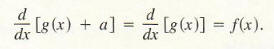If g is any antiderivative of f, then every other antiderivative off must have the form g(x) + a for some number a.