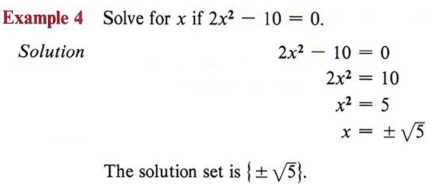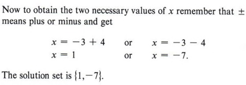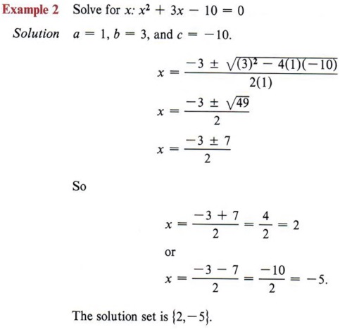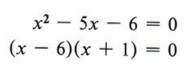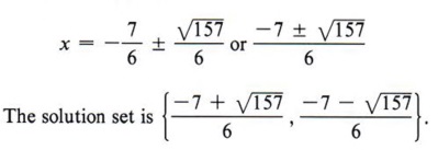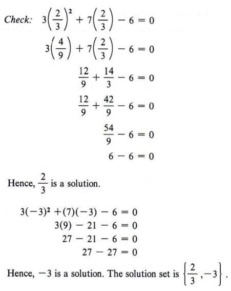 The solutions can be indicated either by writing x = 6 and x = - 1 or by using set notation and writing {6, - 1}, which we read "the solution set for x is 6 and - 1." In this text we will use set notation.