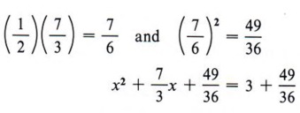 Example 7 Solve 3x2 + 7x - 9 = 0 by completing the square.