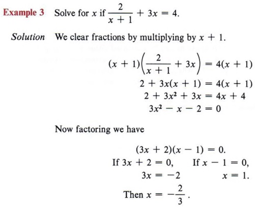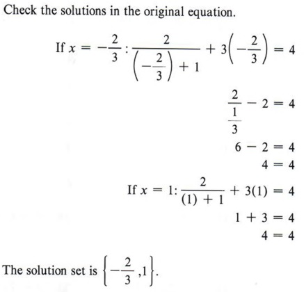 | Check in the original equation to make sure you do not obtain a denominator with a value of zero. |
