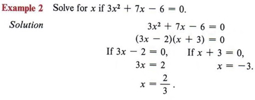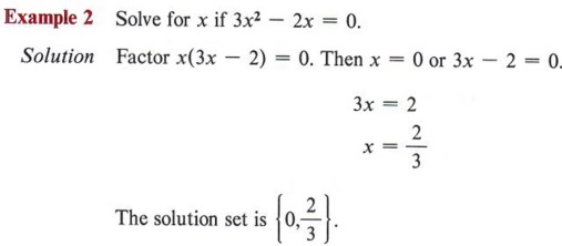 | x is a common factor. The product of two factors is zero. We therefore use the theorem from the previous section. Check these solutions. |