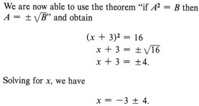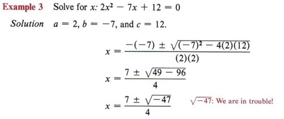 Follow the steps in the previous computation and then note especially the last ine. What is the conclusion when the square of a quantity is equal to a negative number? "No real solution."