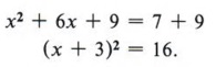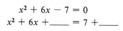 Example 5 Solve x2 + 6x - 7 = 0 by completing the square.