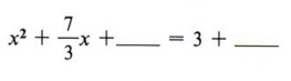 Solution First we notice that the -7 term must be replaced if we are to have a perfect square trinomial, so we will rewrite the equation, leaving a blank for the needed number.