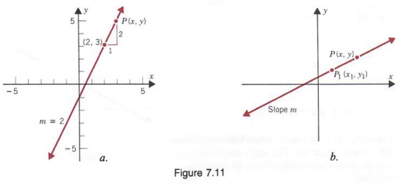 In general let us say we know a line passes through a point P1(x1, y1 and has slope m. If we denote any other point on the line as P(x, y) (see Figure 7.11 b), by the slope formula
