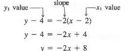 Substitute -2 for m and (2, 4) for (x1, y1) in Equation (2)