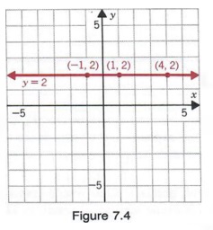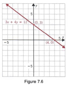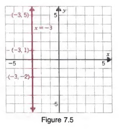 In the above example, the values we used for x were chosen at random; we could have used any values of x to find solutions to the equation. The graphs of any other ordered pairs that are solutions of the equation would also be on the line shown in Figure 7.3. In fact, each linear equation in two variables has an infinite number of solutions whose graph lies on a line. However, we only need to find two solutions because only two points are necessary to determine a straight line. A third point can be obtained as a check.