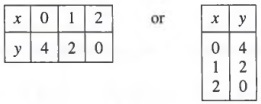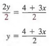 Solve 2y - 3x = 4 explicitly for y in terms of x and obtain solutions for x = 0, x = 1, and x = 2.
