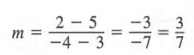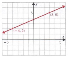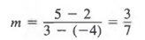 We designate (3, 5) as (x2, y2) and (-4, 2) as (x1, y1). Substituting into Equation (1) yields