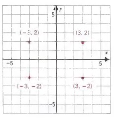Graph (3, 2), (-3, 2), (-3, -2), and (3, -2) on a rectangular coordinate system.