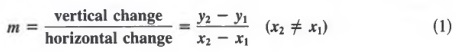 The slope of a line containing the points P1(x1, y1) and P2(x2, y2) is given by