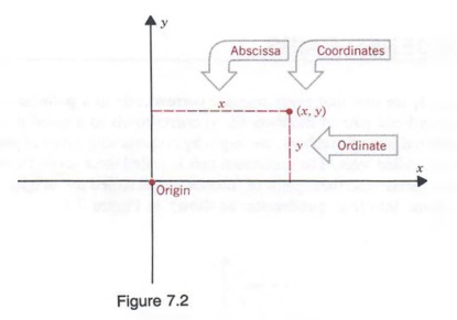 The distance y that the point is located from the x-axis is called the ordinate of the point, and the distance x that the point is located from the y-axis is called the abscissa of the point. The abscissa and ordinate together are called the rectan- gular or Cartesian coordinates of the point (see Figure 7.2).