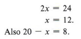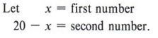 | We could also write the equation (20 - x) - x = 4 since we don't know which number is larger. Solve the above equation. |