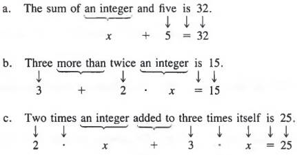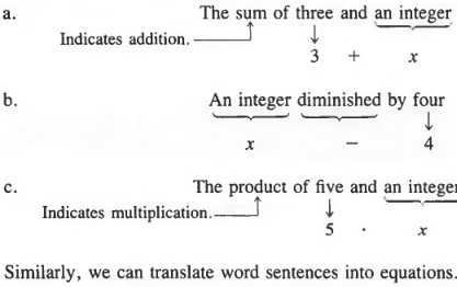Most problems that deal with practical applications of mathematics are expressed in words. Before we can solve such problems, we must translate word sentences into mathematical equations. We can then use the techniques of the previous sections to solve the equations.