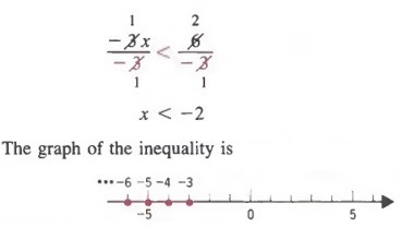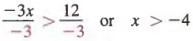 Now we apply Property 3 and divide each member by -3. In this case we have to reverse the order of the inequality.