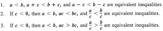 Sometimes it is not possible to determine the solutions of a given inequality simply by inspection. But using the following properties, we can form equivalent inequalities (inequalities with the same solutions) in which the solution is evident by inspection.