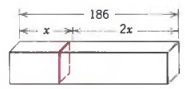 A board 186 centimeters long is cut into two pieces so that one piece is twice as long as the other. How long is each of the two pieces?