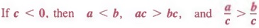 3. If each member of an inequality is multiplied or divided by the same negative number, the result is an equivalent inequality in the opposite order.